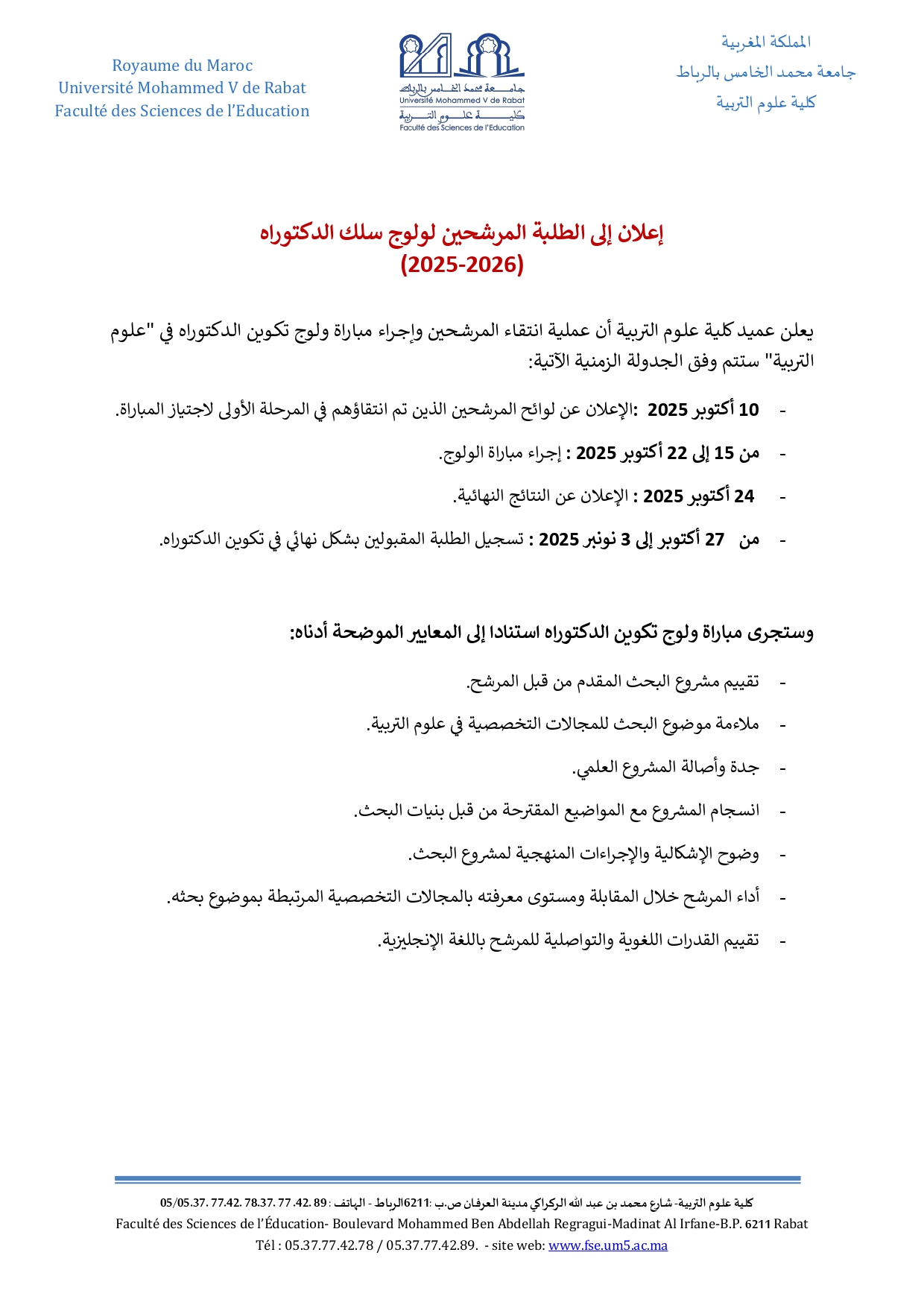 إعلان إلى الطلبة المرشحين لولوج سلك الدكتوره (2025-2026)
